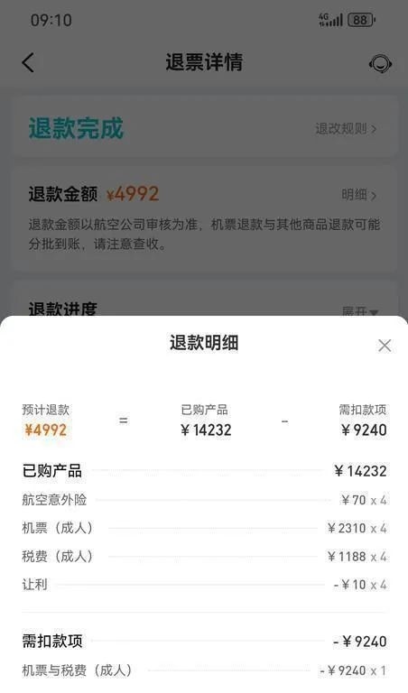 “买了机票发现选错了时间,马上申请退票就被扣了这么多钱。”11月28日,珠海市民周先生向记者回想起11月初购买国际机票的遭遇时说,他花14232元在“去哪儿旅行”App平台上购买国际机票,发现选错时间后,马上申请退票,最终被扣款9240元,仅退回4992元。